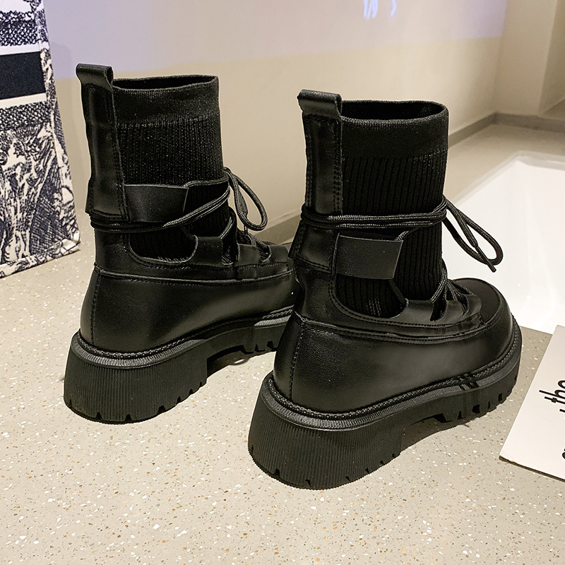 - Product Name: Wool Chunky Heel Round Toe Plus Size Front Tie Black Martin Ankle Boots
